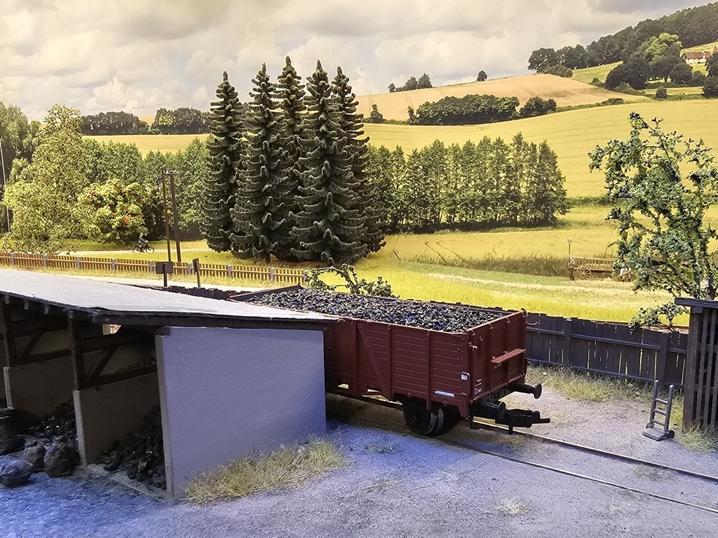Der letzte Wagen im Verband ist ein offener Wagen der Gattung Ou. Er wurde in die Kohlehandlung Schäfer im Bahnhof Grünhain-Bernsdorf zugestellt. Kohle ist zu dieser Zeit das wichtigste Massengut.